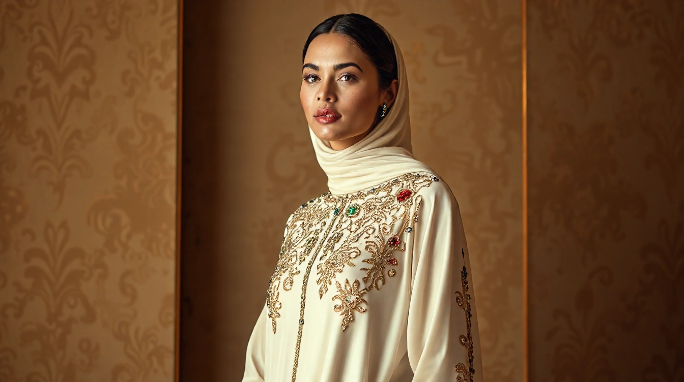 Côté matières et textures, on observe un fort engouement pour les tissus légers et respirants, tels que la mousseline de soie et le crêpe doux, qui confèrent aux abayas une allure aérienne et raffinée. Certaines abayas associent ces matières à des détails en dentelle ou broderies discrètes, soulignant la finesse du travail artisanal tout en restant dans la simplicité attendue.